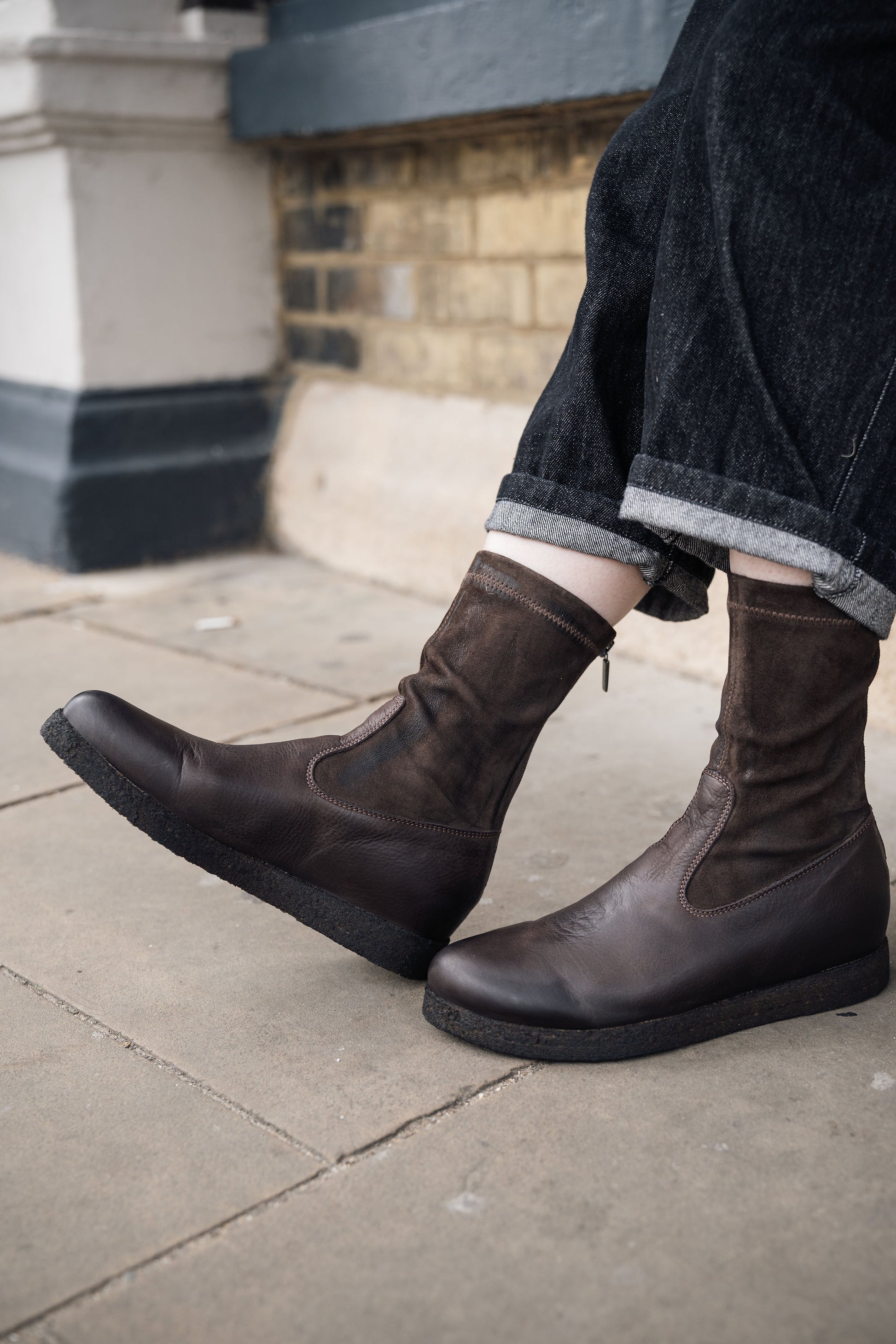 New colour and new style but still as comfortable and stylish as ever. The chocolate brown colour is going to pair seamlessly with your AW24 wardrobe (stock arriving daily). The length has been a consistent length from us and is 3/4 being the perfect fit for trousers, skirts and dresses. The stretch ankle part is in suede this season which is a beautful elegant combination with the solid leather foot.